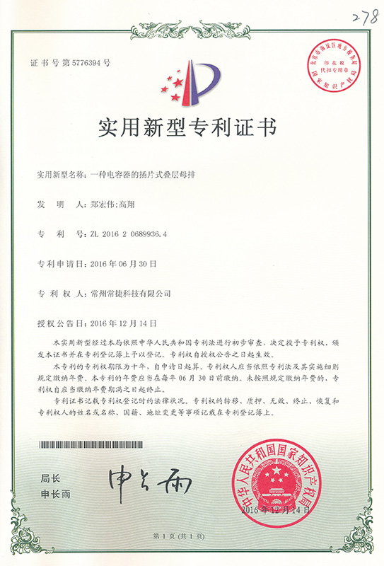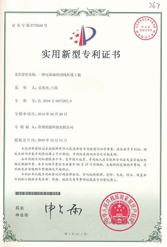 | 高新技術企業 | 工程技術研究中心 | 江蘇省新能源金屬化薄膜電容器工程技術研究中心 | 常州市名牌產品 |