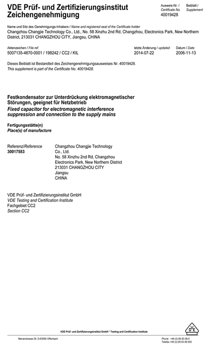 年獲得江蘇省新能源金屬化薄膜電容器工程技術研究中心